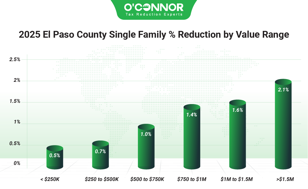 2025 El Paso county retail % reduction in assessed value by sub-type