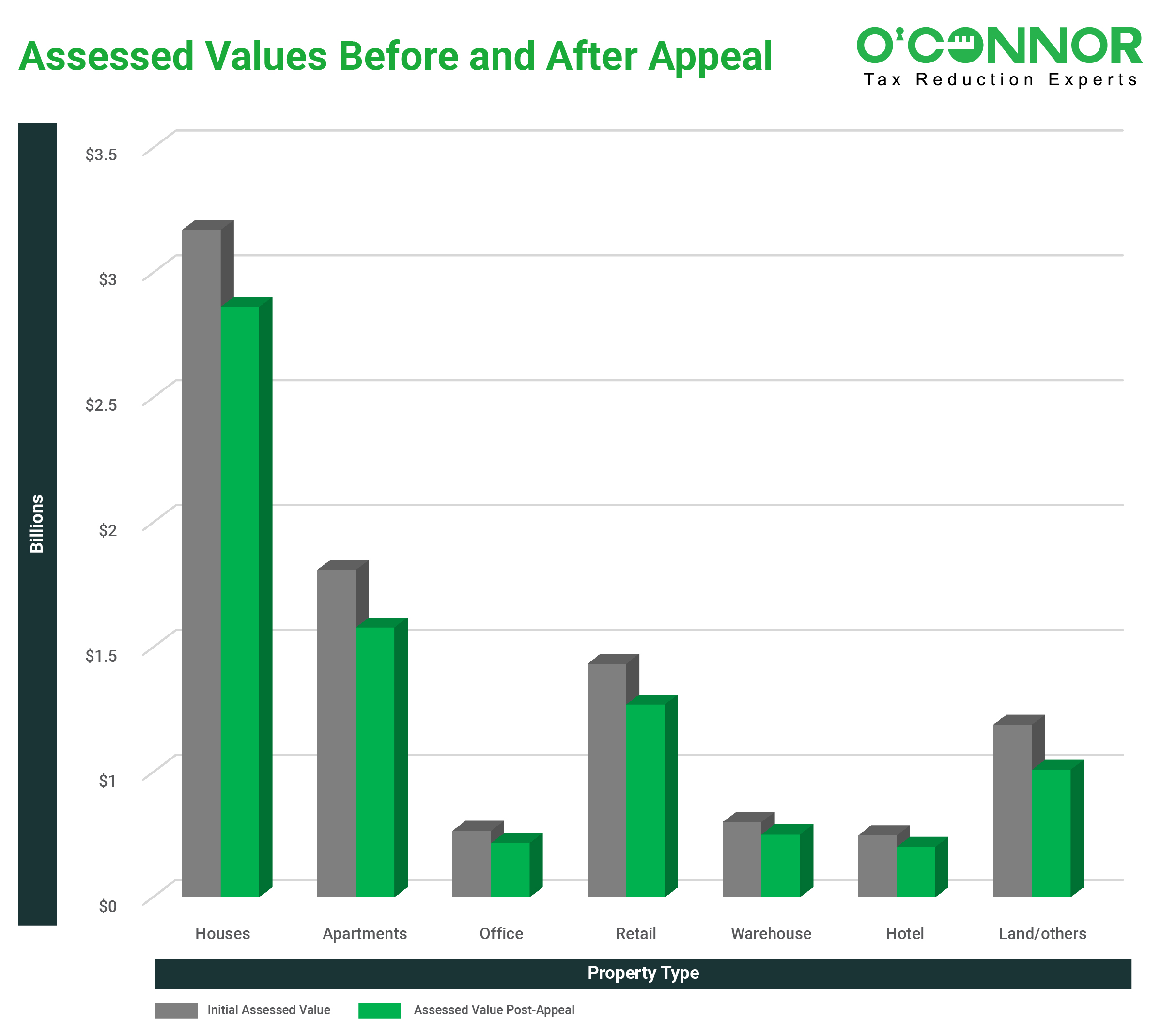 Apartment complex owners had their original values reduced from $1.3 billion to $1.07 billion for the 2023 tax appeals resolved this tax year, resulting in a $230 million reduction in tax assessments. Based on a 2.7% tax rate, the owners of apartment buildings will save $6 million in property taxes in 2023. Bell County commercial apartment owners concluded the year with an average reduction percentage of 17.6%. With the hearing outcomes for 147 multi-family buildings accomplished in 2023, the ultimate property tax savings per apartment tax appeals turned out to be $42,366.