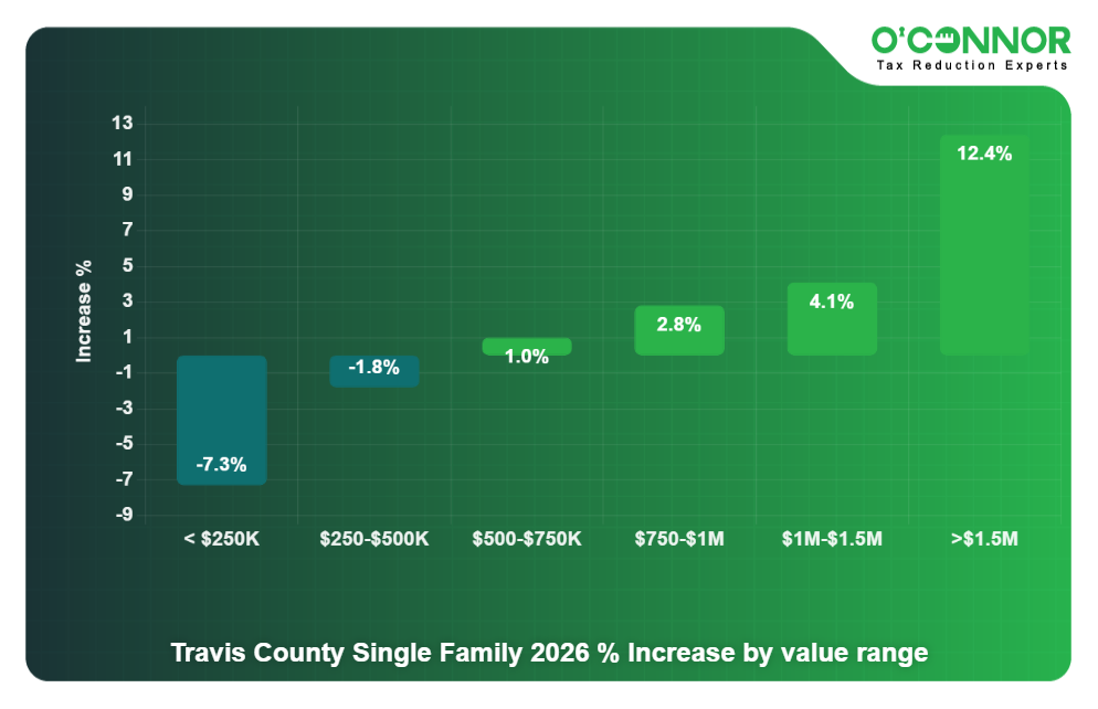 Arguably the top real estate market in Texas, Austin and Travis County have seen their property values triple in less than a decade. This substantial increase has led to some of the highest property taxes in the state, directly impacting homeowners and business owners with larger tax bills. Thankfully, taxpayers have responded by filing some of the highest numbers of property tax appeals in the state, with over one-third of all properties being protested every year. In 2026, the Travis Central Appraisal District (TCAD) further increased valuations for both homes and businesses, intensifying the tax impact on property owners.